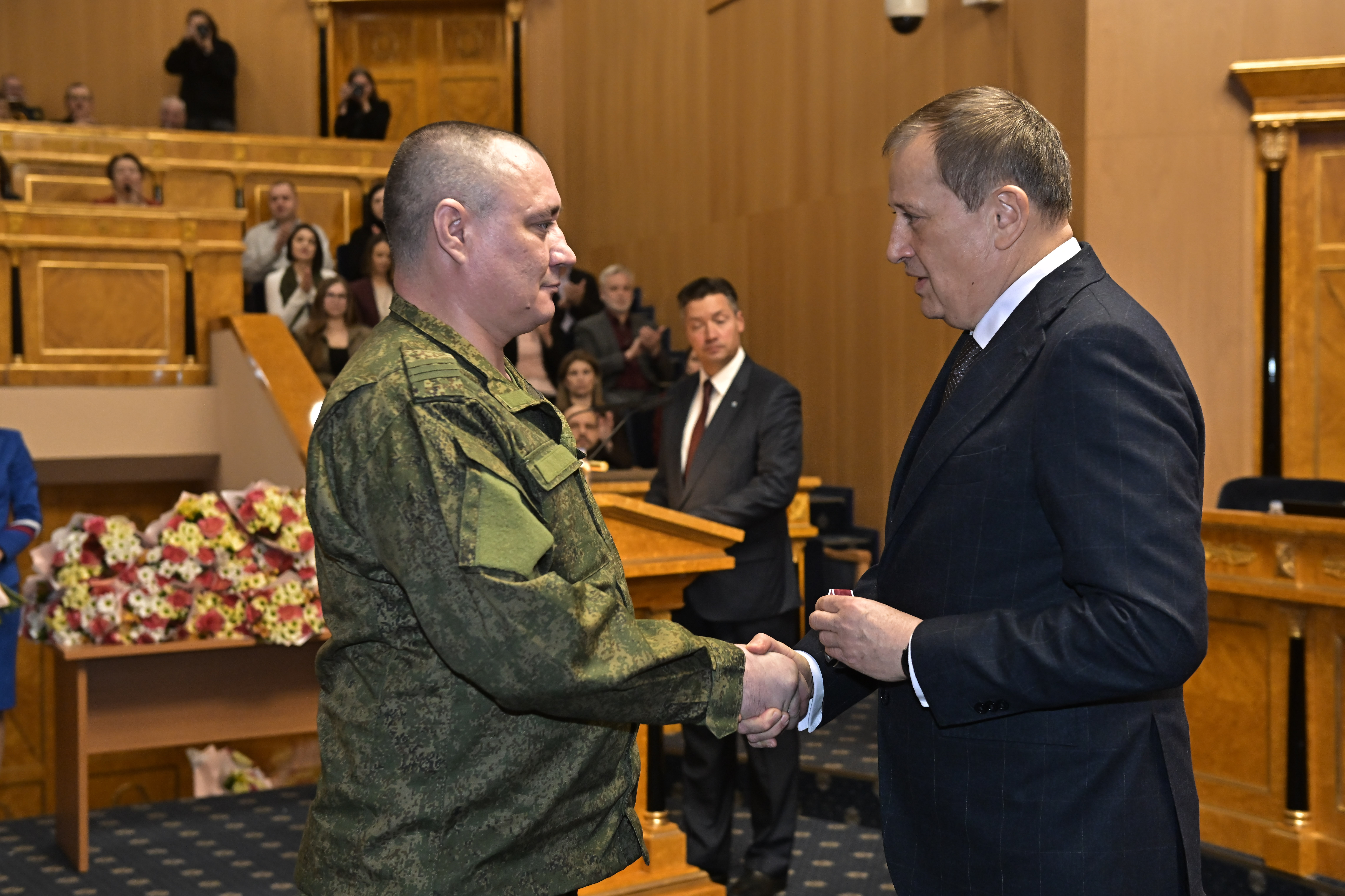 «Сегодня в этом зале собрались те, кто каждый день своим трудом делает наш регион лучше. Для нас каждый награжденный – настоящий герой. Герой, который служит Родине и добивается высоких трудовых достижений. И, конечно, для нас очень важно, чтобы все жители нашего родного региона – ваши сослуживцы, однополчане, коллеги, друзья, родственники – не просто вами гордились, а равнялись на вас и стремились соответствовать вашим критериям. Уверен, этот день запомнится нам всем. Для Ленинградской области – это повод для гордости, а для вас – день заслуженного признания. Желаю всем успехов и, конечно, скорейшей победы!» – поздравил награждённых глава региона Александр Дрозденко, отметив, что на последней церемонии федеральных наград было на треть больше, чем областных.