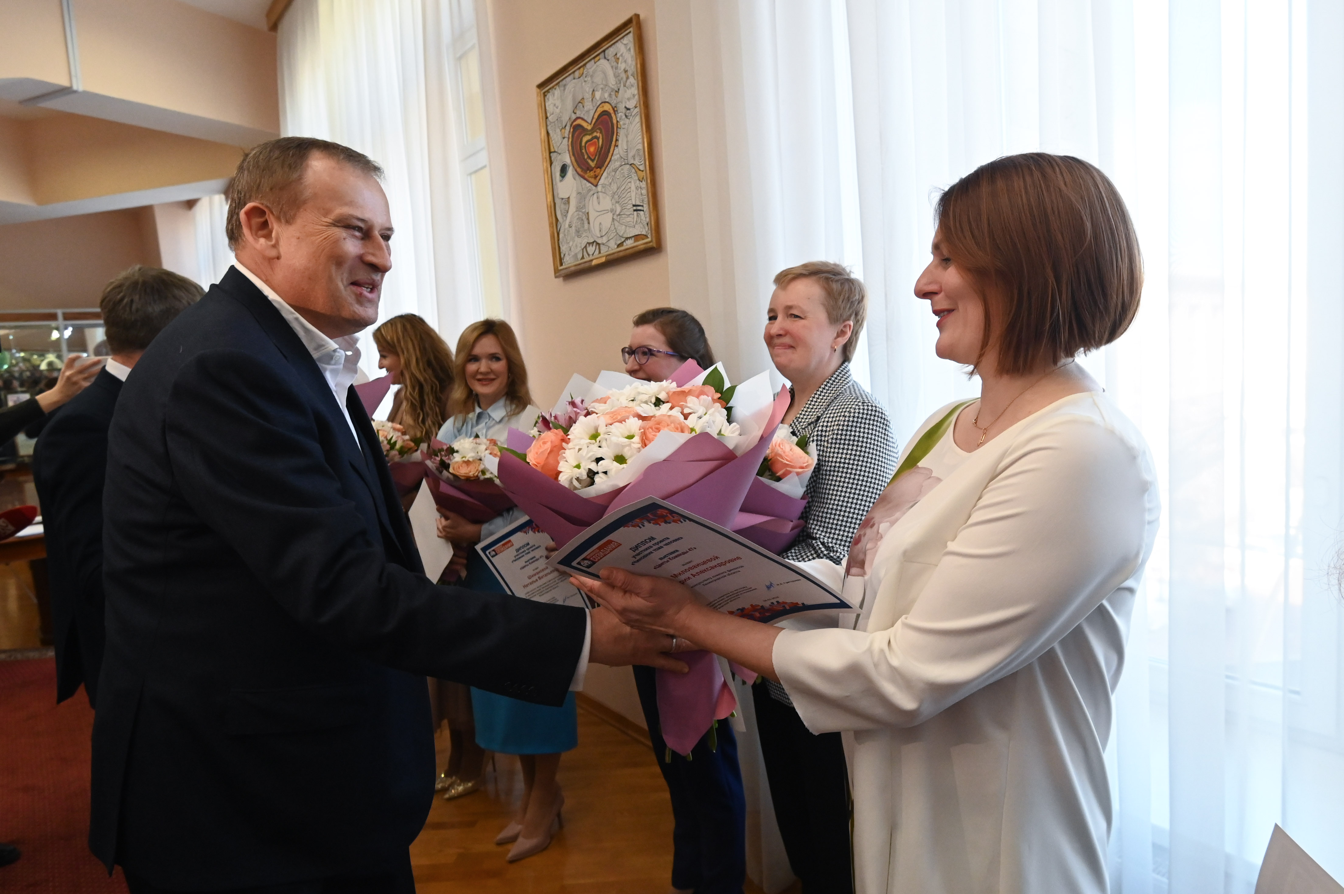 Особые поздравления с Международным женским днём получили пациентки и сотрудницы Ленинградского областного перинатального центра. Настоящий праздник – с весенними букетами, песнями и улыбками – создал Ресурсный добровольческий центр при поддержке комитета по молодёжной политике Ленинградской области в рамках Всероссийской акции «Вам, любимые!». Волонтёры вручили 200 букетов будущим мамам и сотрудницам центра – акушерам, педиатрам, детским реаниматологам, неонатологам и гинекологам. Сначала в актовом зале центра для коллектива прозвучали трогательные песни под гитару в исполнении активного волонтёра и музыканта из Ленинградской области Артёма Филимоновского. А затем добровольцы прошли по этажам и палатам, чтобы лично поздравить пациенток центра. Они побывали даже в родильном отделении, где морально поддержали и вручили прекрасную розу Екатерине Никитиной, которая буквально через два часа счастливо родила третью доченьку весом 4 кг и ростом 53 см.